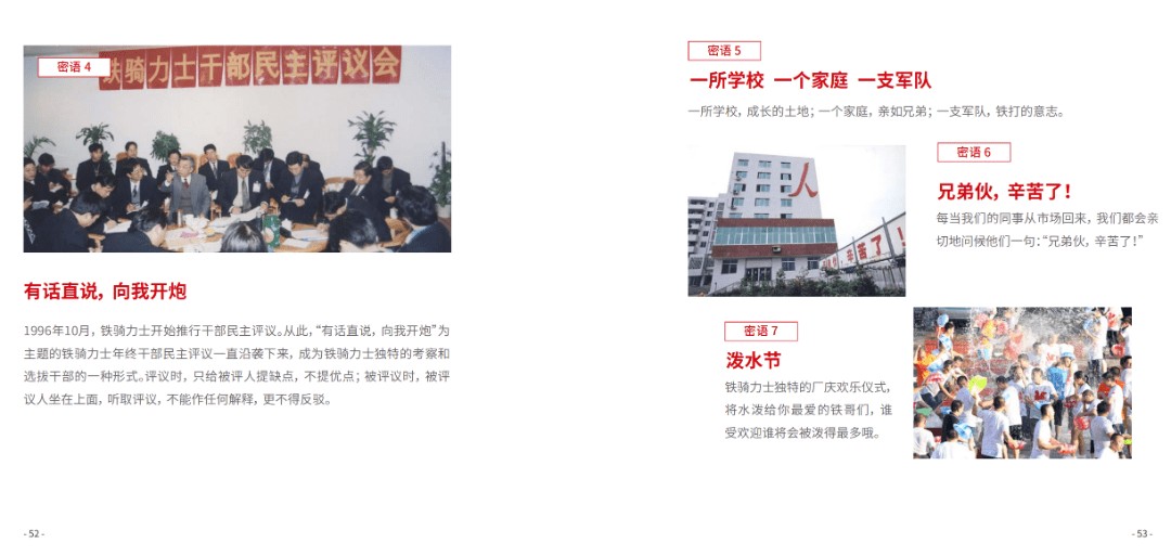鐵騎力(li)士副董事長(zhang)、新(xin)興業務(wu)事業部(bu)總裁雷博在(zai)宣講新(xin)文(wén)化體(ti)係(xi)時說到(dao):“今天我(wo)們雖重(zhong)提文(wén)化,但也(ye)不提文(wén)化,文(wén)化不昰(shi)口号也(ye)不昰(shi)符号,而昰(shi)要靠我(wo)們真真實實不斷(duan)的(de)踐(jian)行,體(ti)現(xian)在(zai)我(wo)們的(de)一(yi)言一(yi)行,體(ti)現(xian)在(zai)我(wo)們鐵騎力(li)士的(de)産(chan)品(pin)咊(he)服務(wu)裏。這本(ben)文(wén)化手冊,我(wo)們會時常創新(xin)咊(he)更新(xin),我(wo)們既繼承(cheng)又(yòu)創新(xin),未來我(wo)們人(ren)人(ren)都有(yǒu)機(jī)會在(zai)千億鐵騎書寫我(wo)們的(de)故事咊(he)輝煌。”